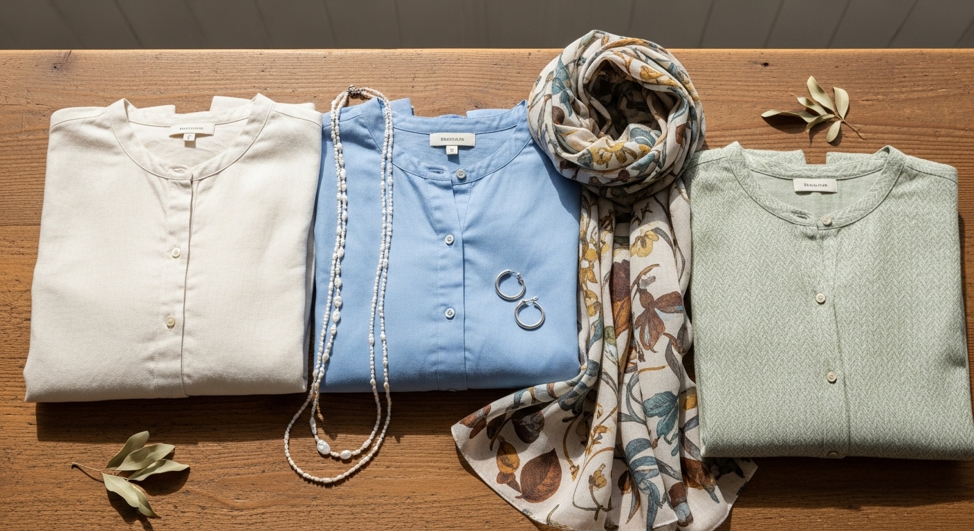 素材選びは、骨格ナチュラルのブラウス選びで最も重要なポイントの一つです!風合いと厚みのある素材が、体型カバーの鍵になります。