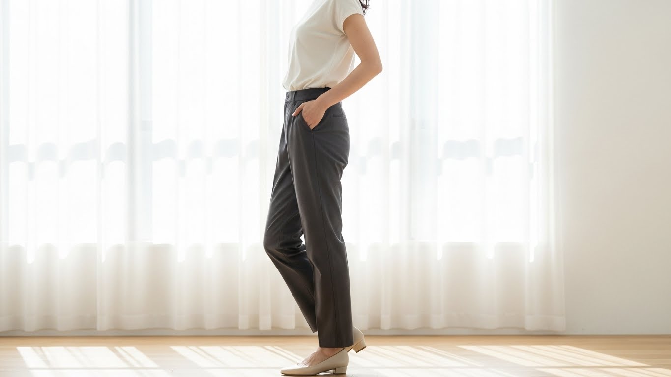 体型カバーパンツとは、気になる部分を自然に隠しながらスタイルアップして見せるデザインのパンツのこと。