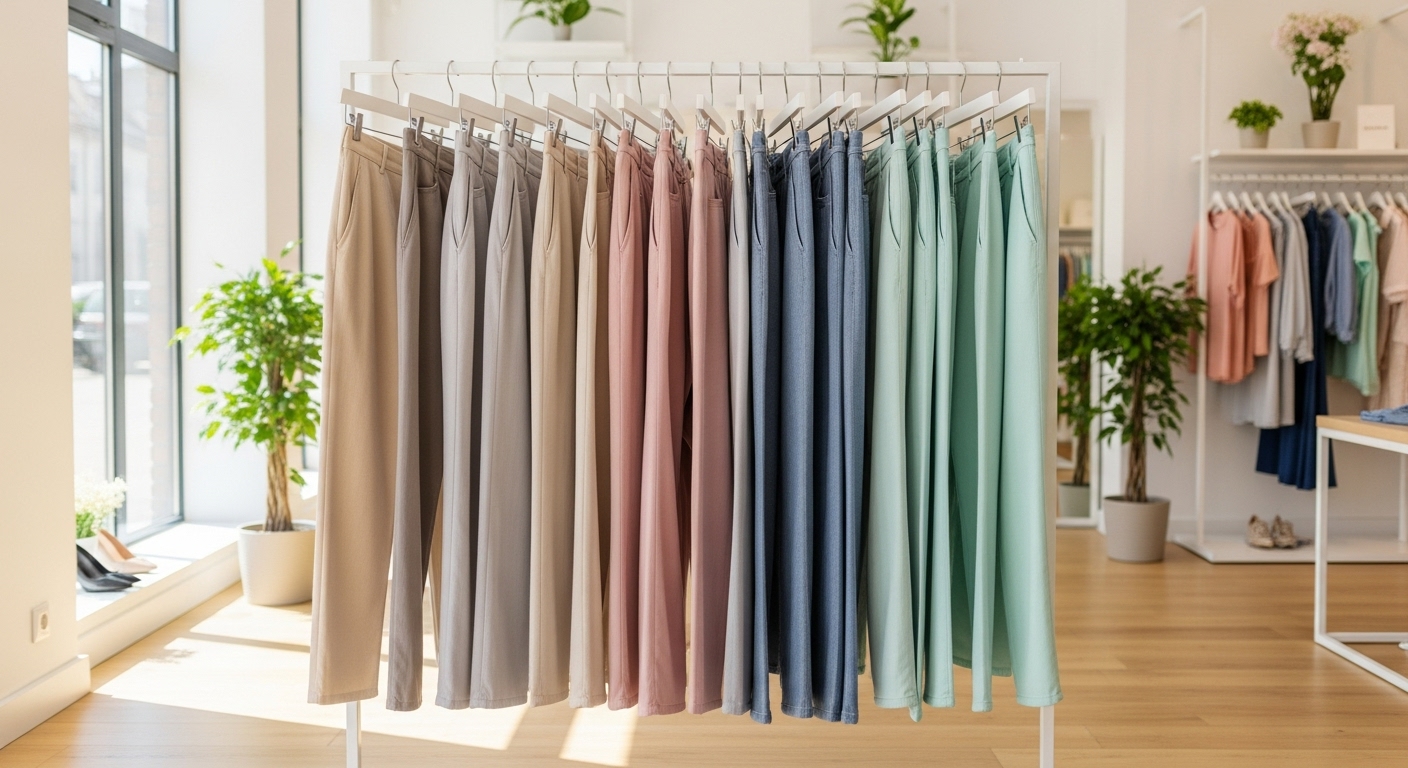 春の体型カバーパンツには、大人の雰囲気を醸し出す色選びが重要です。