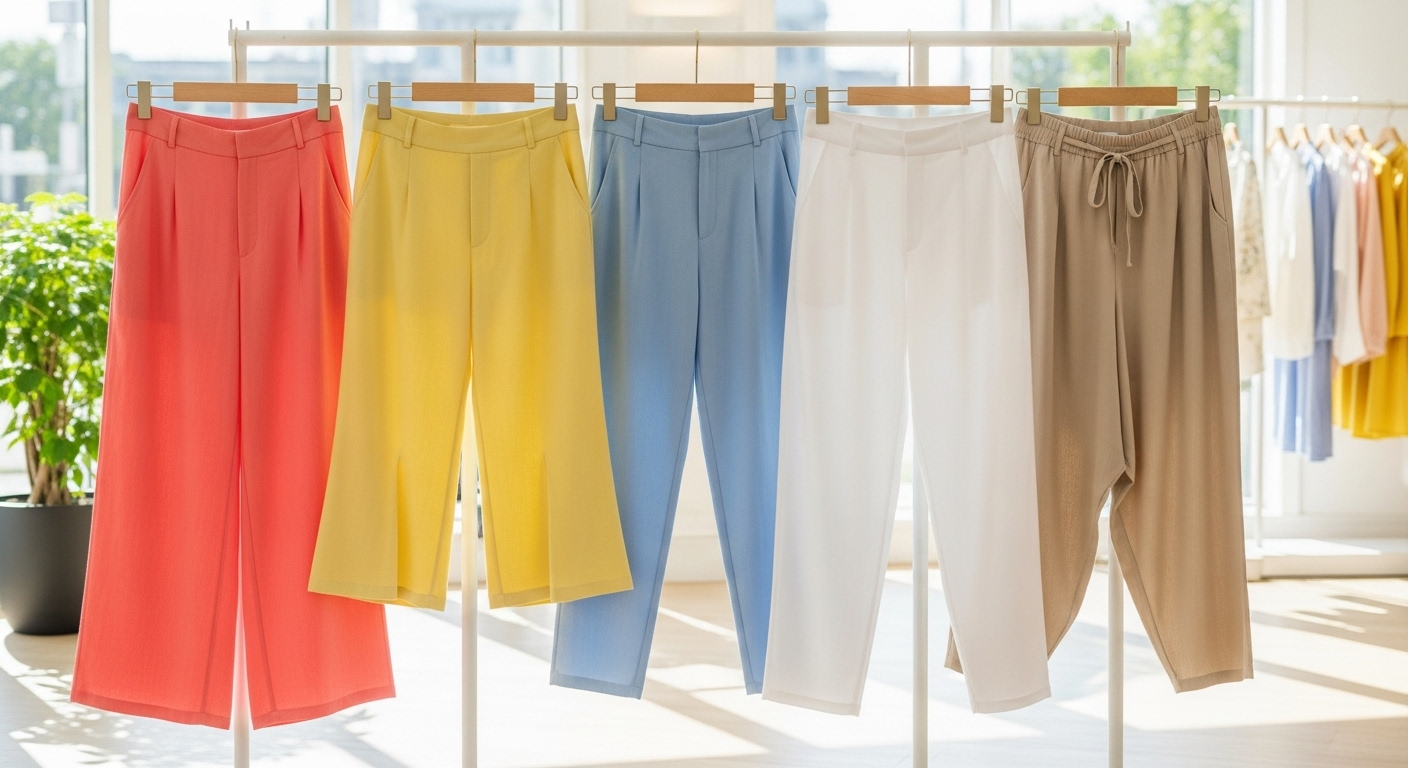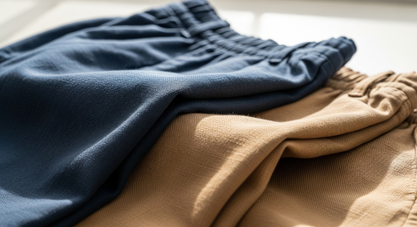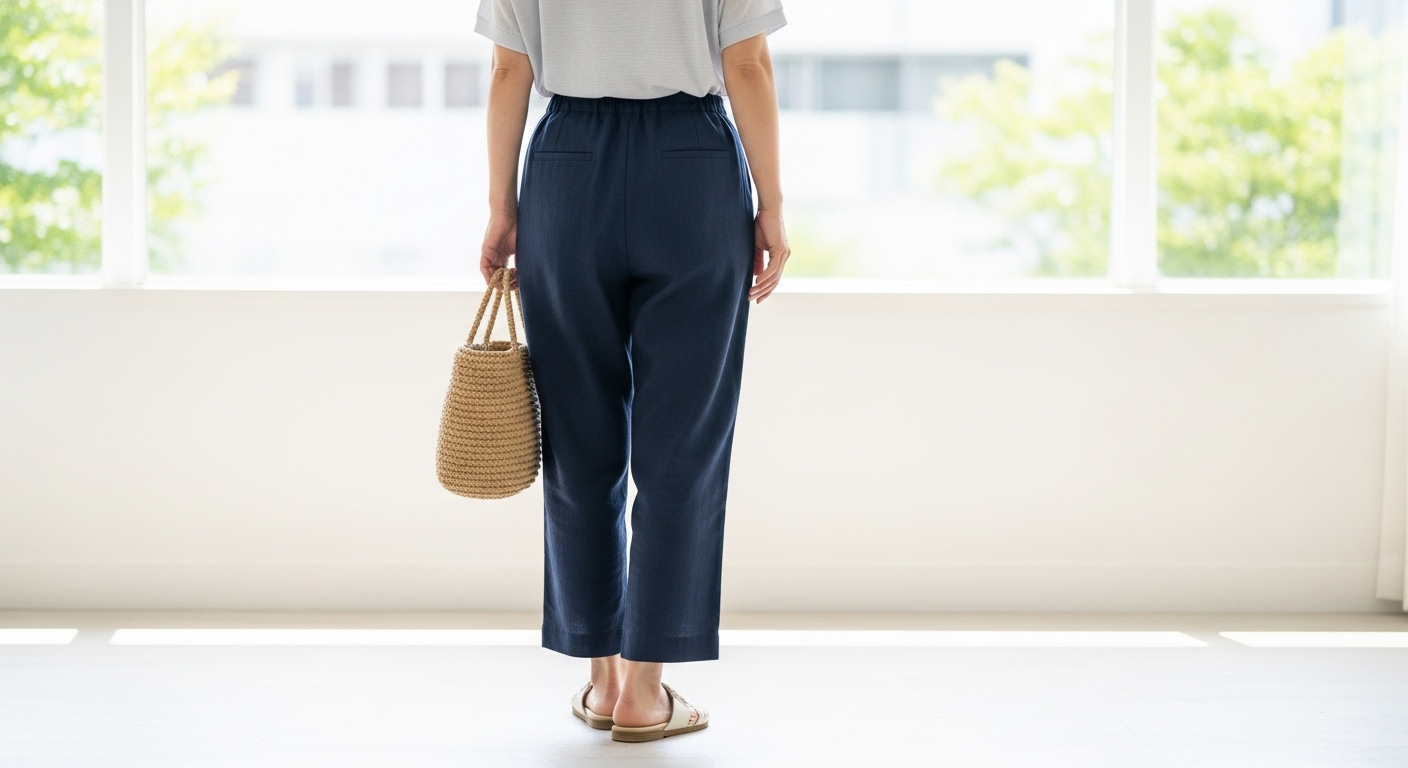 リネンや麻混素材は、夏の体型カバーパンツに最も適した素材です。