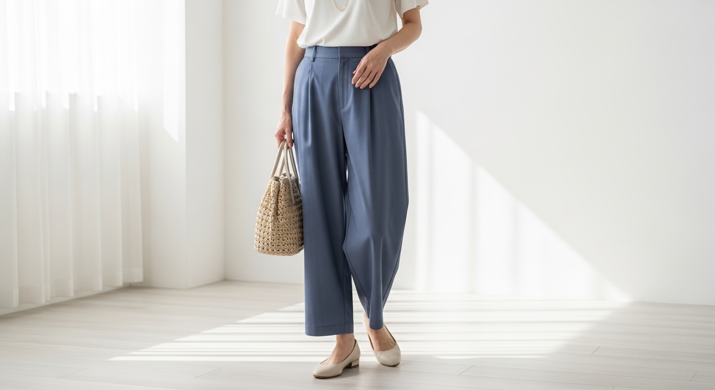 夏に選ぶなら、リネンやコットン素材のワイドパンツが最適です。