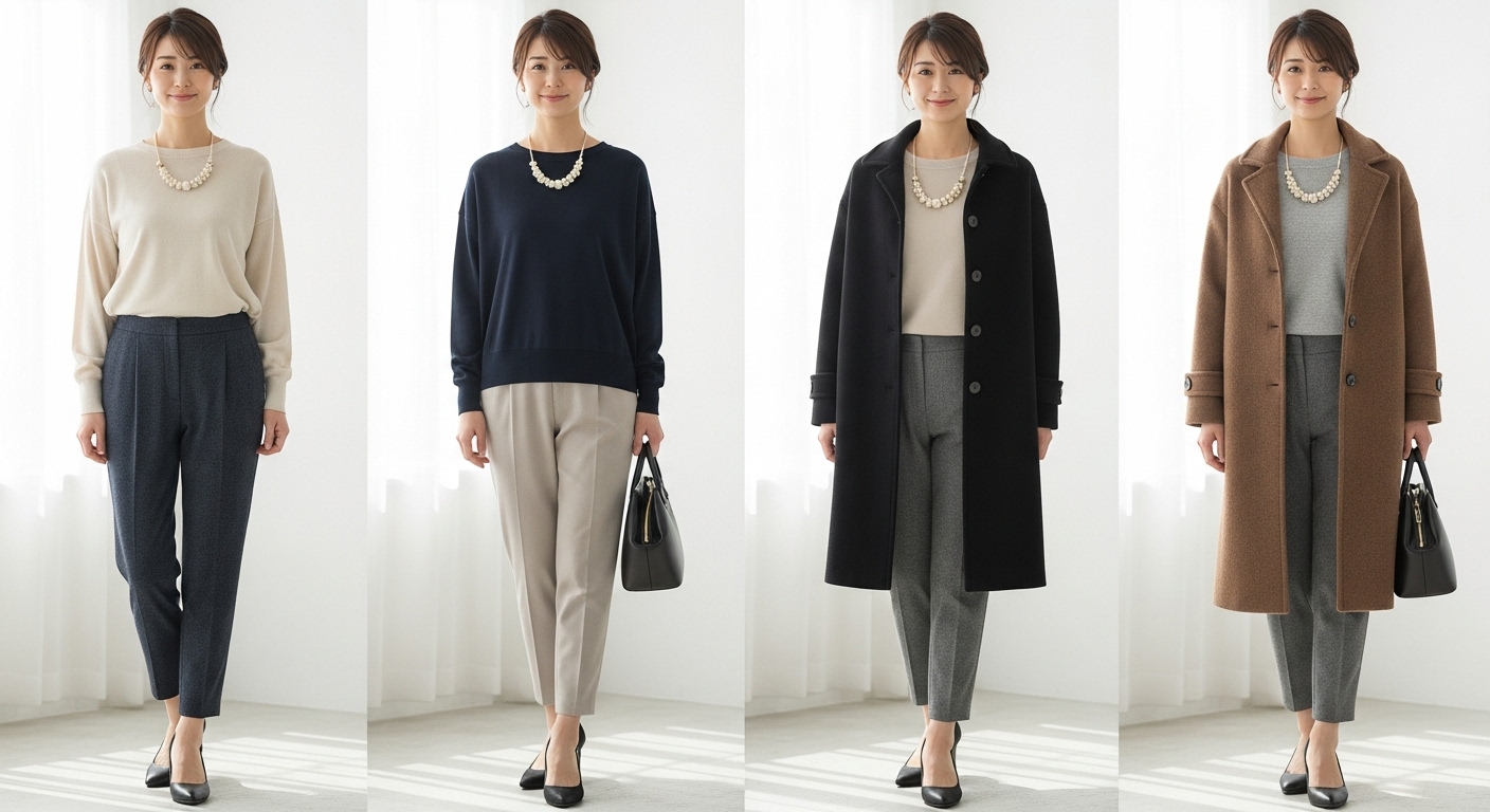 そして、その理由を理解し、適切な選び方とコーディネート術を身につければ、パンツスタイルも十分に楽しめるんです♪