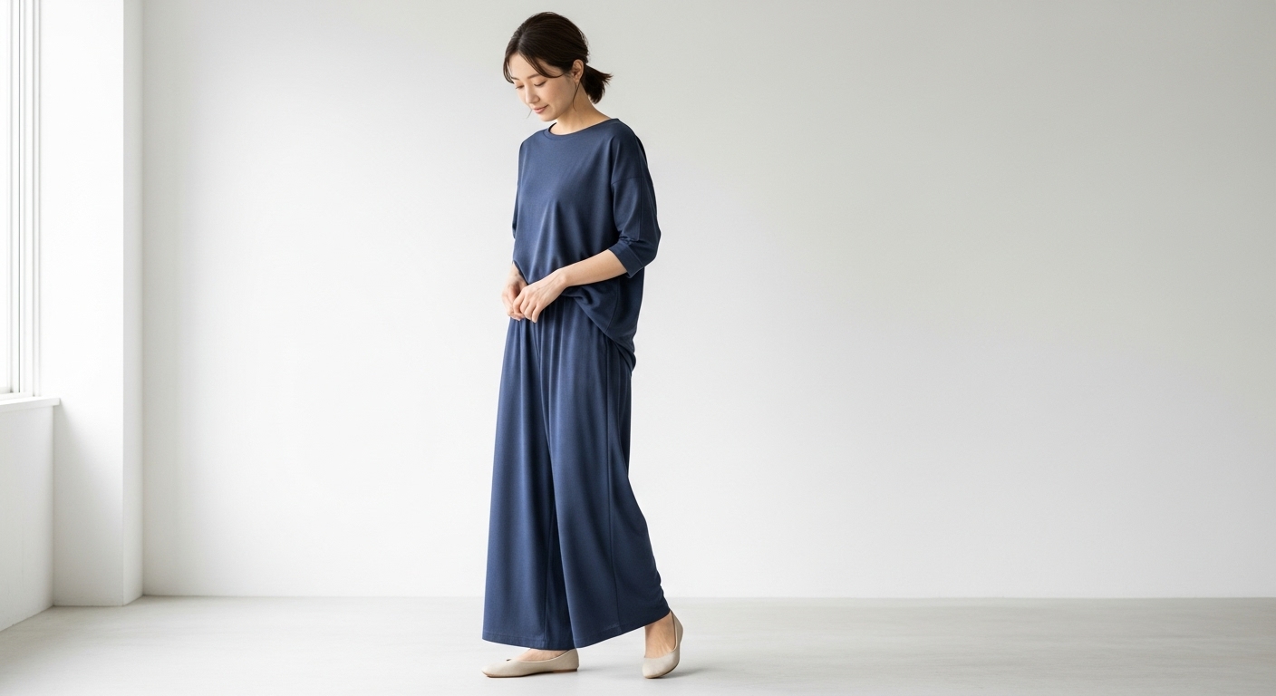 【解決策①】ワイドパンツ・フルレングスのリラックスシルエットで骨格を活かす
