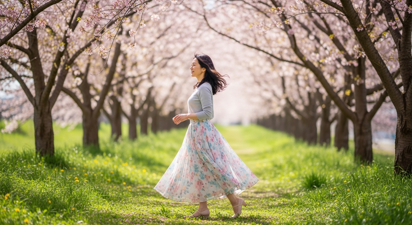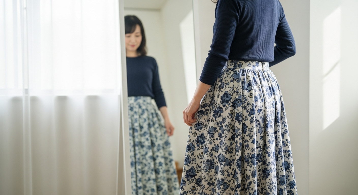 そんなお悩みを解決するために、この記事では40代女性が春に自信を持って着られる体型カバースカートの選び方を、具体的に解説していきます!