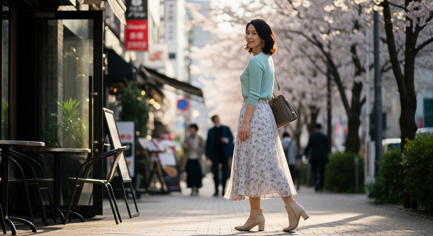 春の体型カバースカート選びは、シルエット、素材、色の3つのポイントを押さえることが大切です。