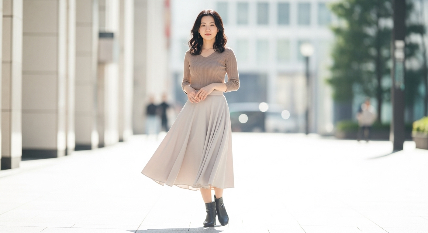 特にフレアやAラインのミモレ丈スカートは、下半身カバーとスタイルアップを同時に叶えてくれるでしょう!