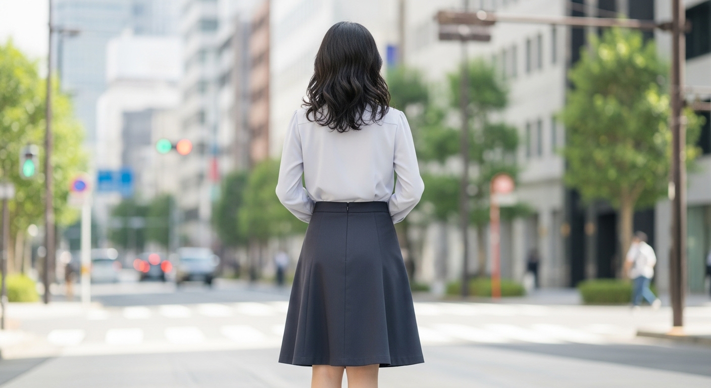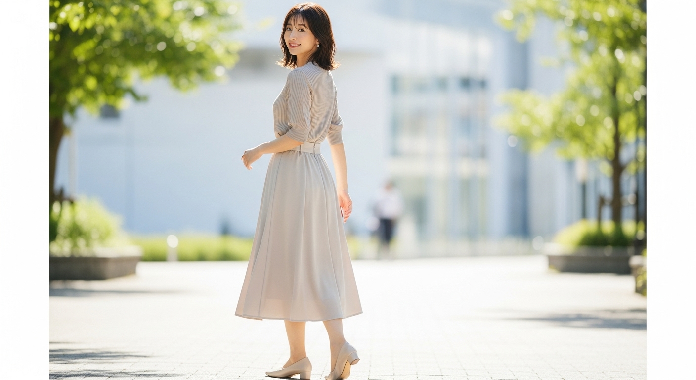 - スカートがタイトめ → トップスは少しゆとりのあるものを