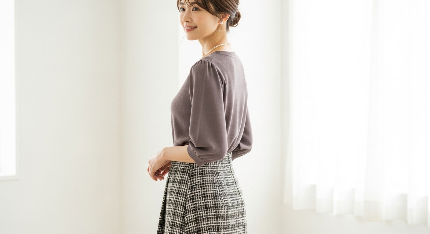適切なサイズと素材のタイトスカートを選べば、ぽっちゃり体型の方でもすっきりと着こなせます。