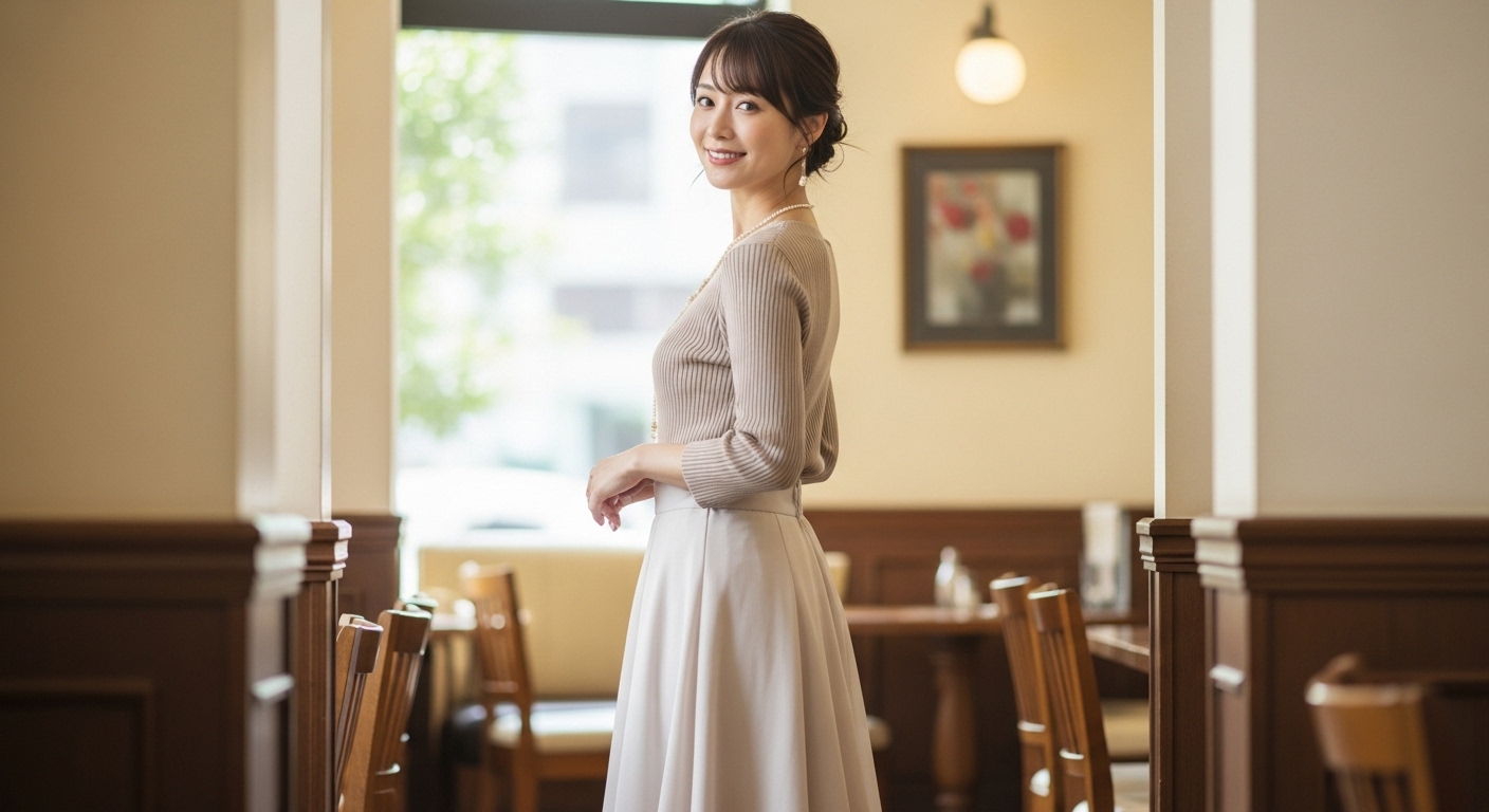 デート向けの体型カバースカートは、Aラインやセミフレア、とろみ素材、淡いカラーを意識して選ぶことが成功の鍵です♪
