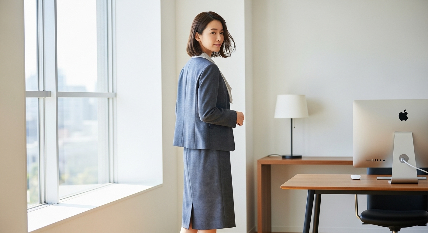 仕事の場では、きちんと感を保ちながらお腹をカバーしたいですね。