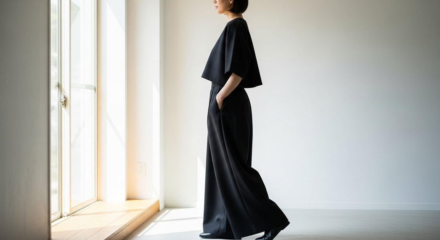 本当に大切なのは、視覚効果を使って「細く見せる」こと♪ 人の目は錯覚を起こしやすく、色の組み合わせやシルエットの作り方で、実際よりもすっきりした印象を与えられます。