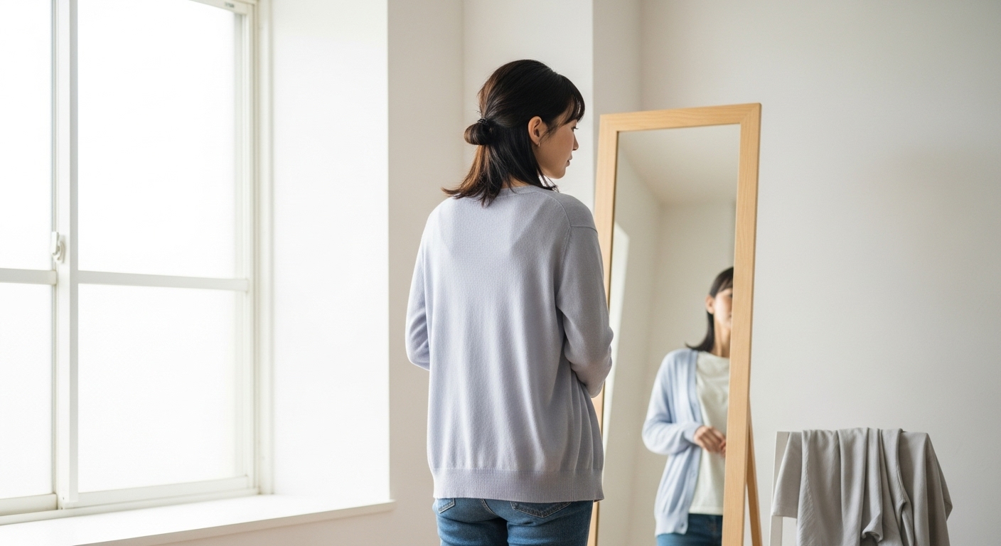 今の体型に合ったサイズとバランスを見直すことで、手持ちの服も活かせる場合がありますよ。
