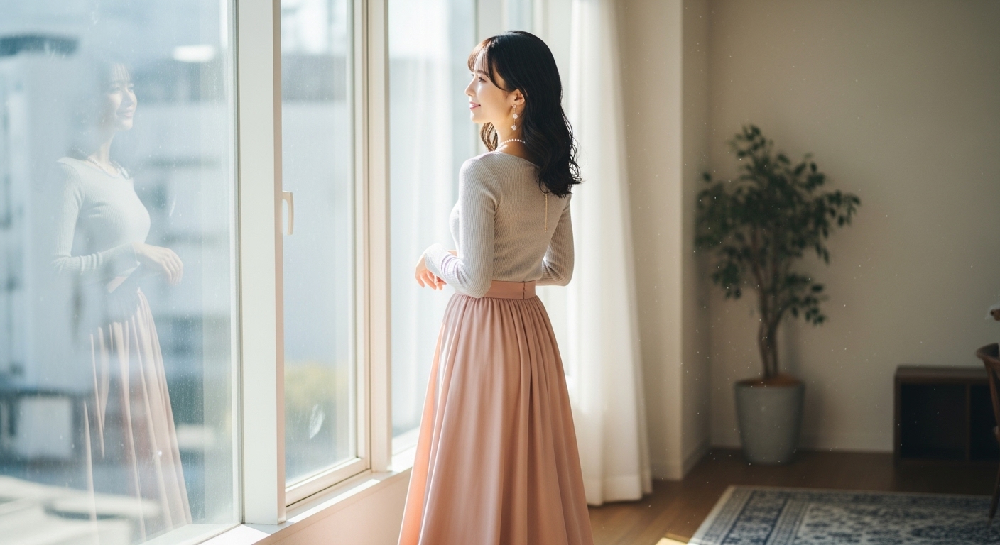実は、アイテムの選び方とちょっとしたコツを知るだけで、太ももをしっかりカバーしながら女性らしくおしゃれなデートコーデは叶うんです。