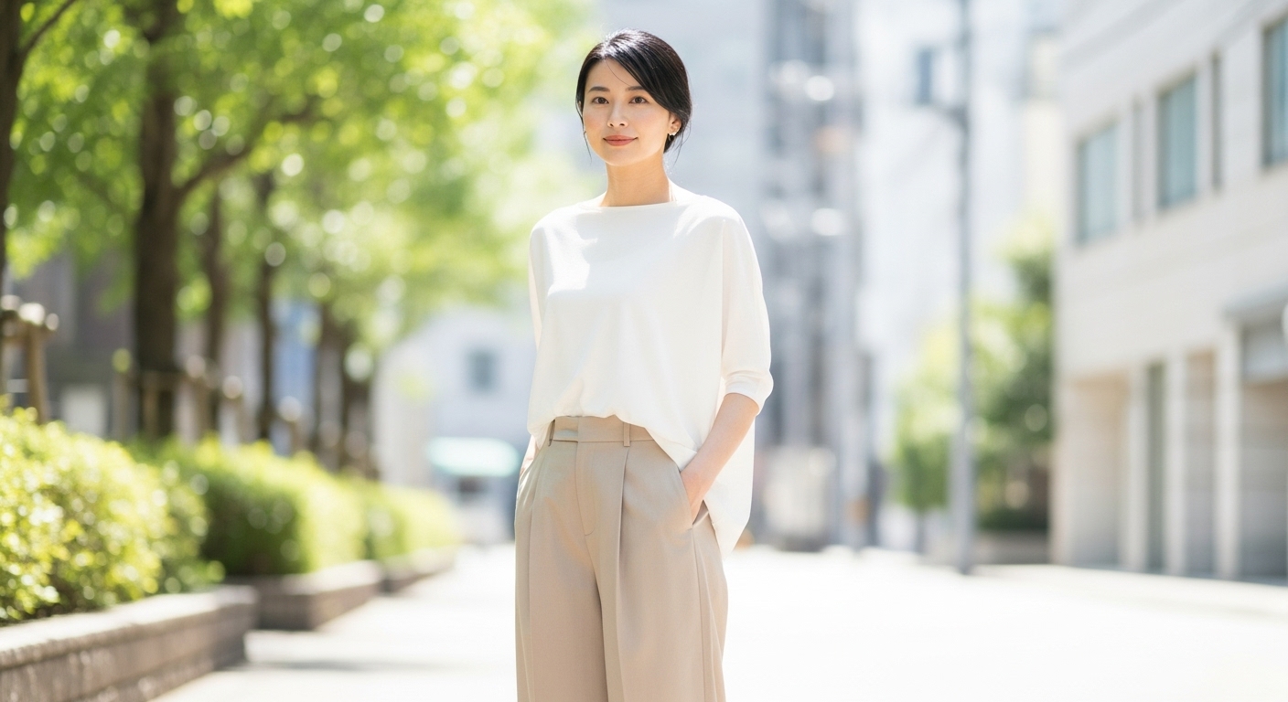年代に合わせて、トップスや小物の選び方を工夫することで、自然な着こなしができます。