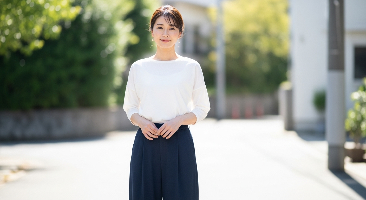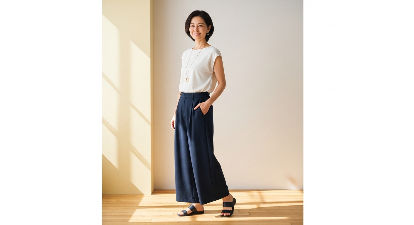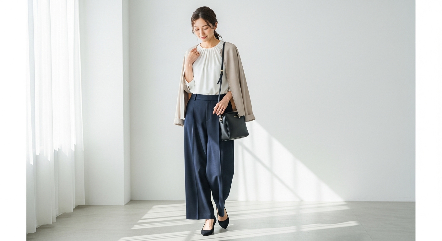 ネイビーワイドパンツの選び方と着こなし術|大人のきれいめスタイル