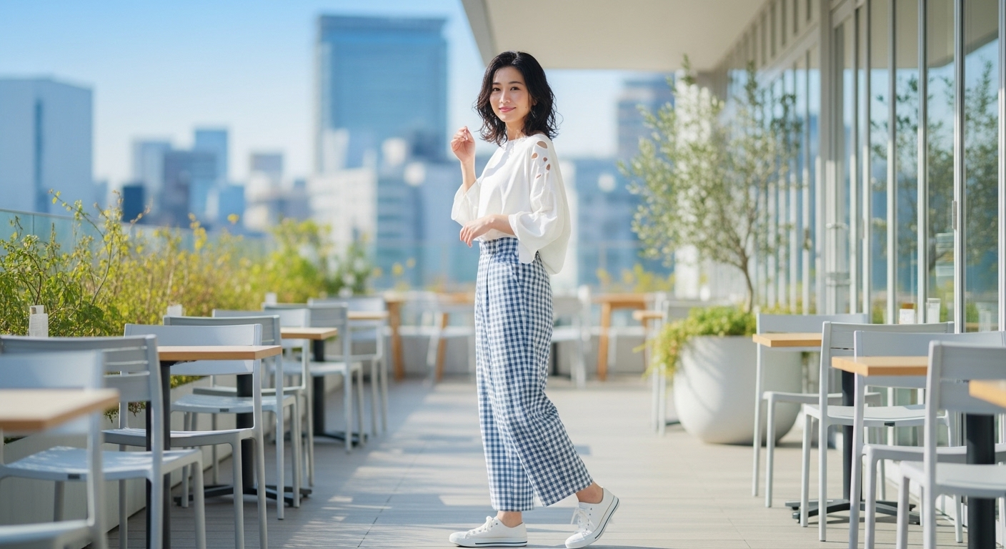 チェック柄ワイドパンツの着こなし|季節別コーデとおしゃれに見せるコツ
