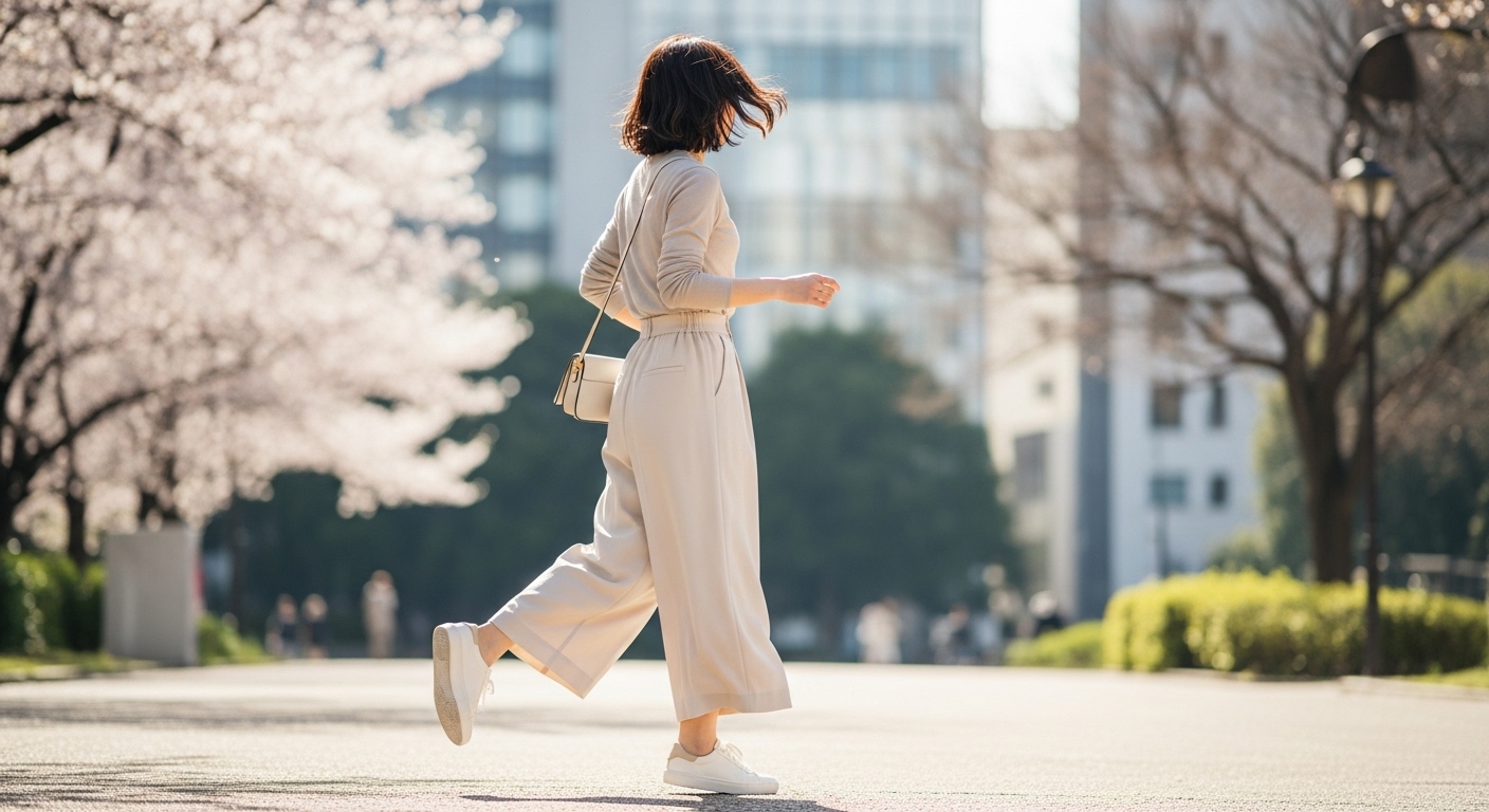 - パンツと靴の色を同系色で揃える → 視覚的に脚が長く見えます