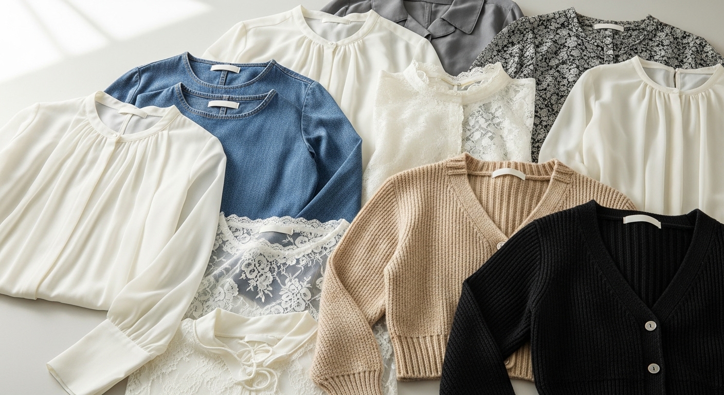 ブラウスやワンピースで取り入れると、上品で女性らしい印象に。