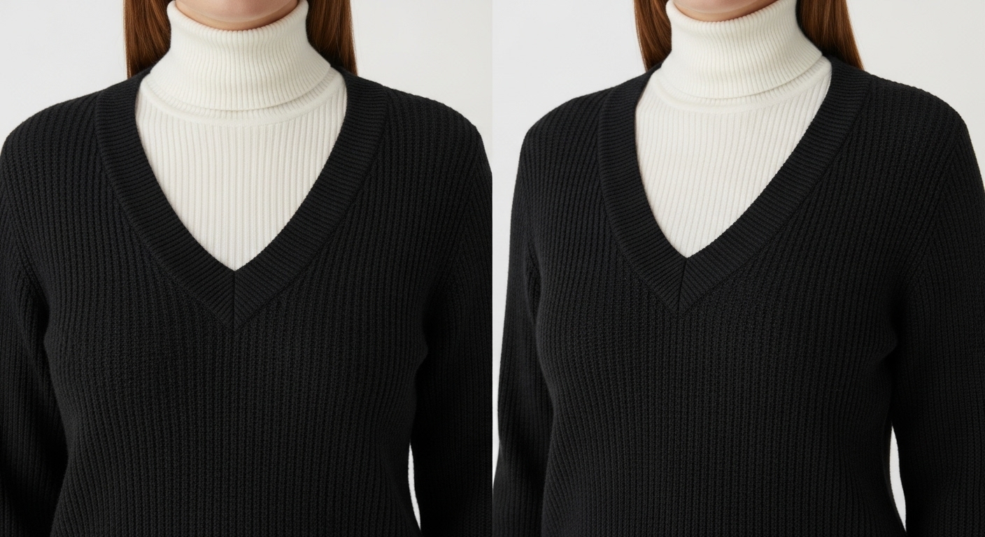 - 首が詰まったデザインより断然スタイルアップ効果あり