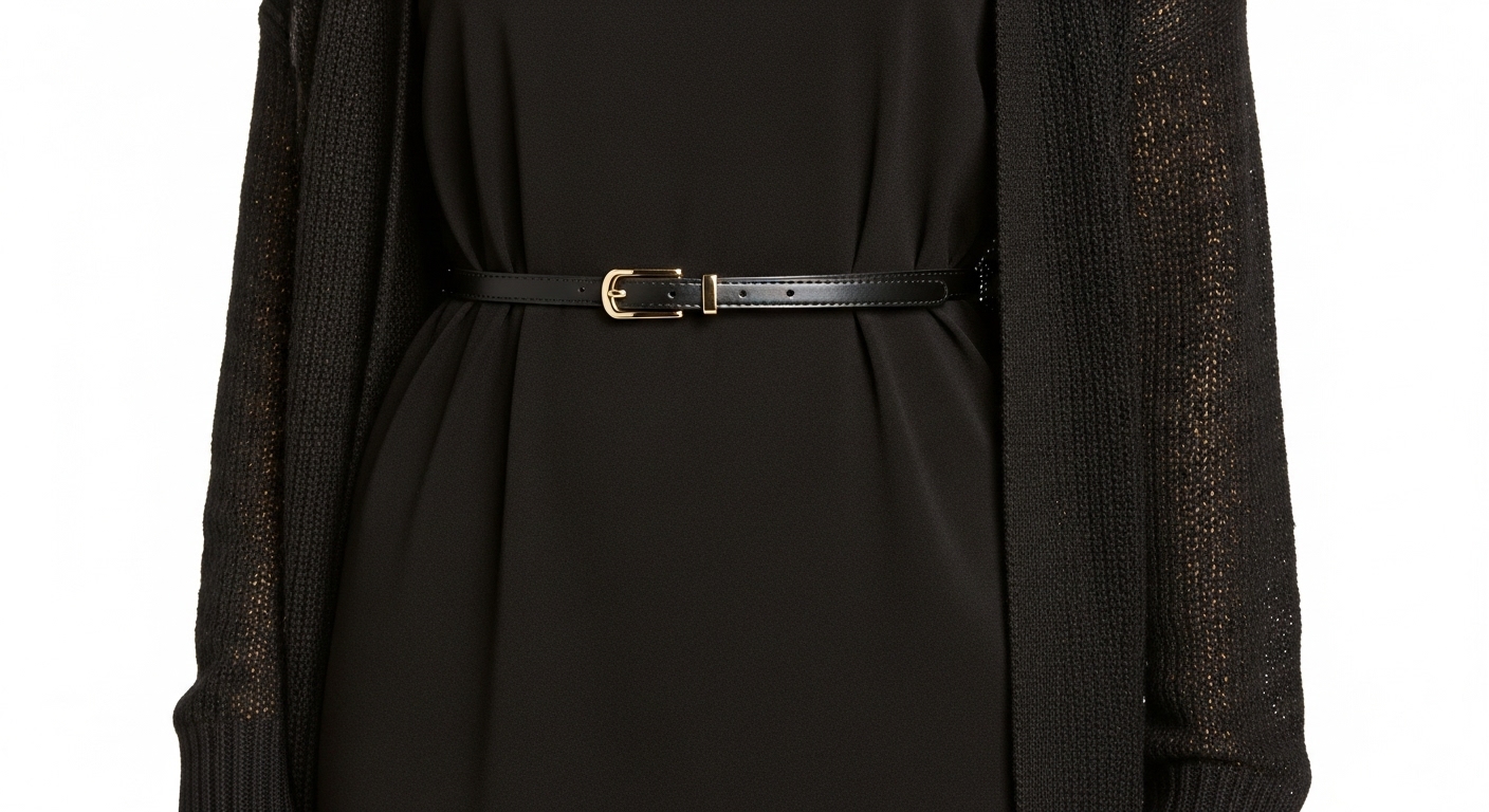 ウエストマークに使える細ベルトは、メリハリを作る優秀アイテム。
