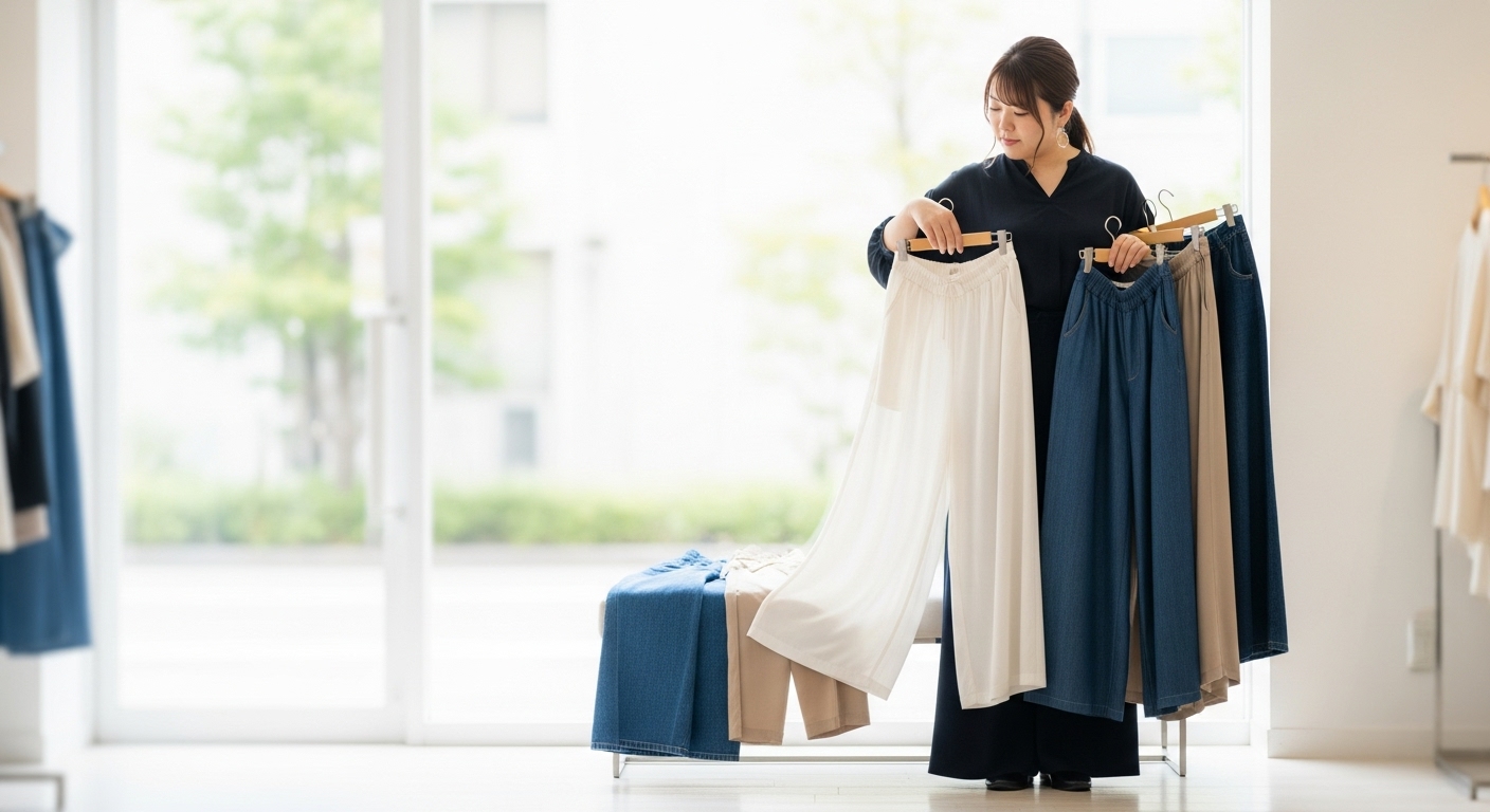 季節に合わせて素材を選ぶと、より快適にワイドパンツを楽しめます。