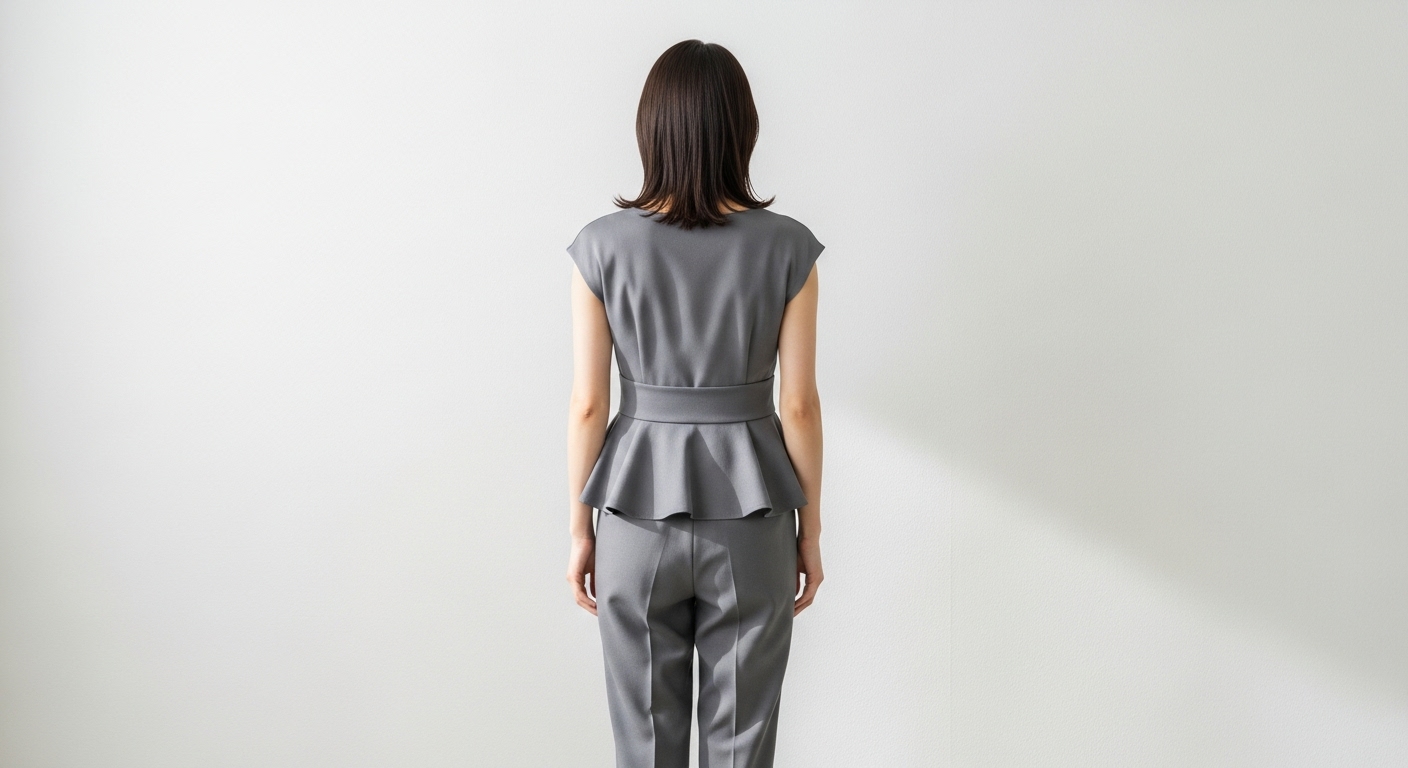 - パンツスタイルならテーパードパンツ+ペプラムトップス