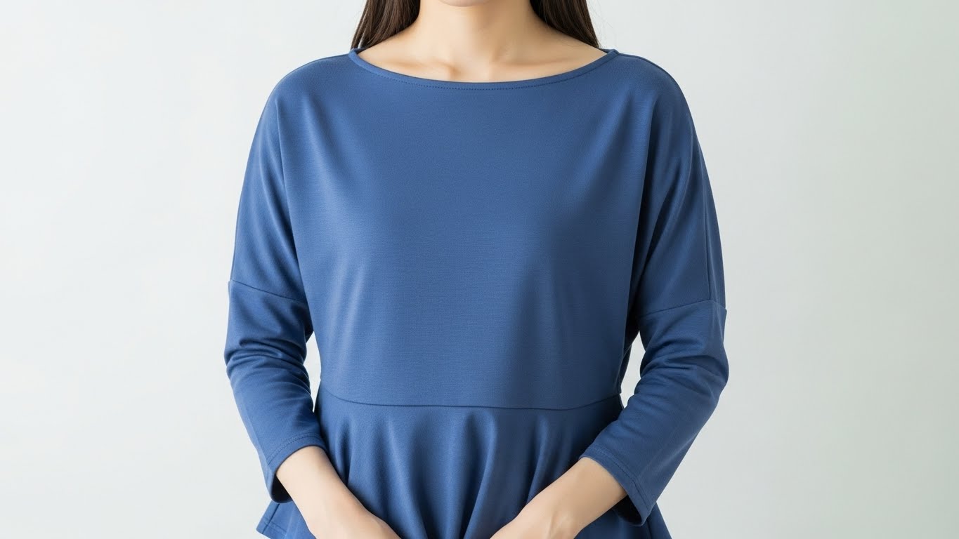 ウエストから裾に向かってふんわり広がるペプラムデザインは、お腹まわりをカバーしたい人にぴったり。