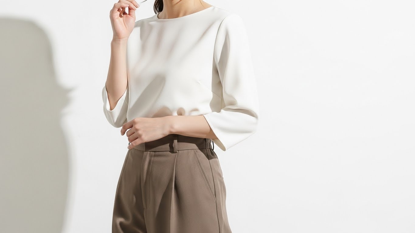最も細見え効果が高いのは、五分袖や七分袖!手首という細い部分が見えるため、対比効果で二の腕がすっきり見えます。