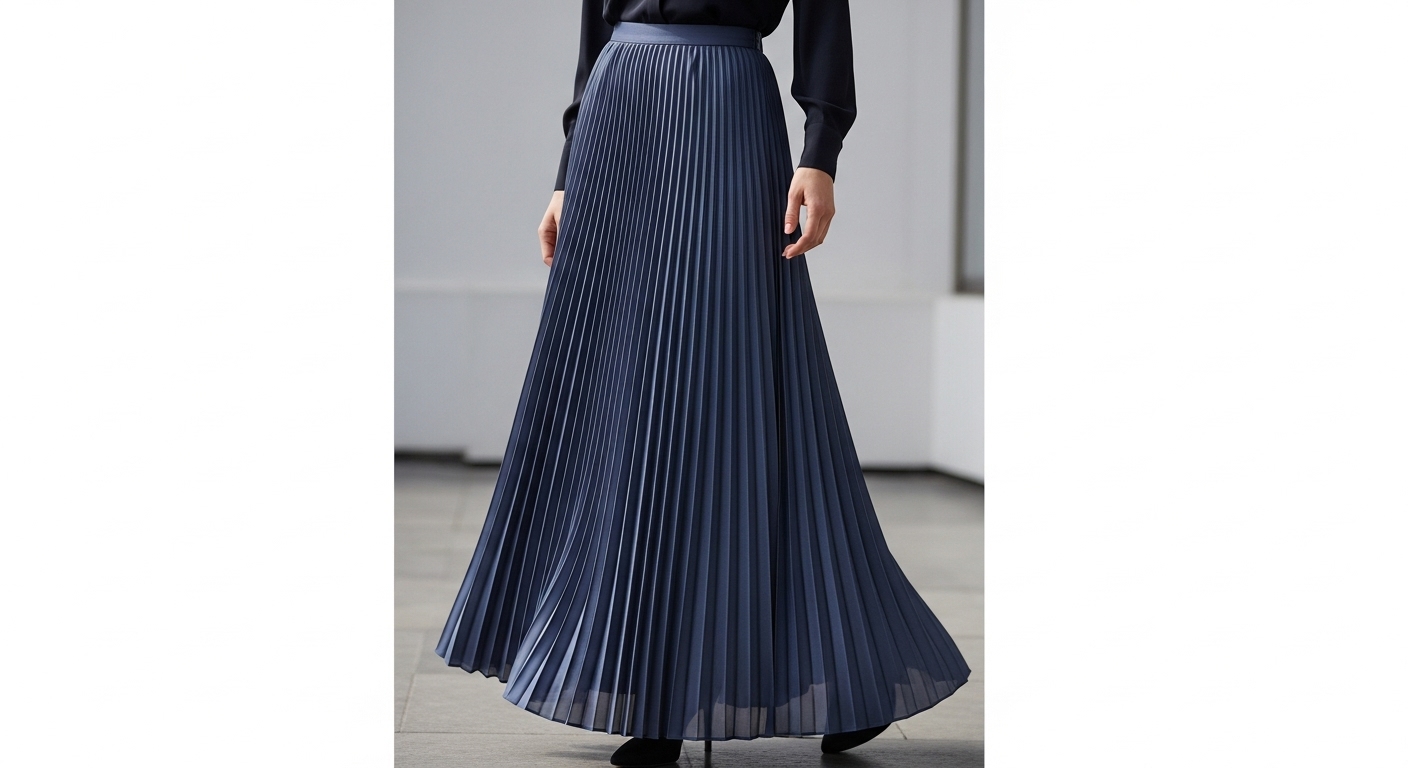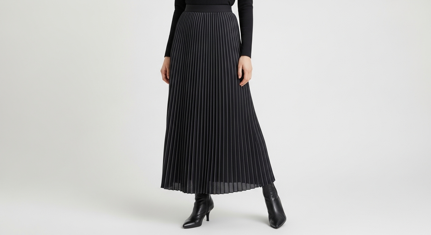 縦に入ったプリーツが視線を縦方向に誘導し、スタイルアップ効果を発揮。