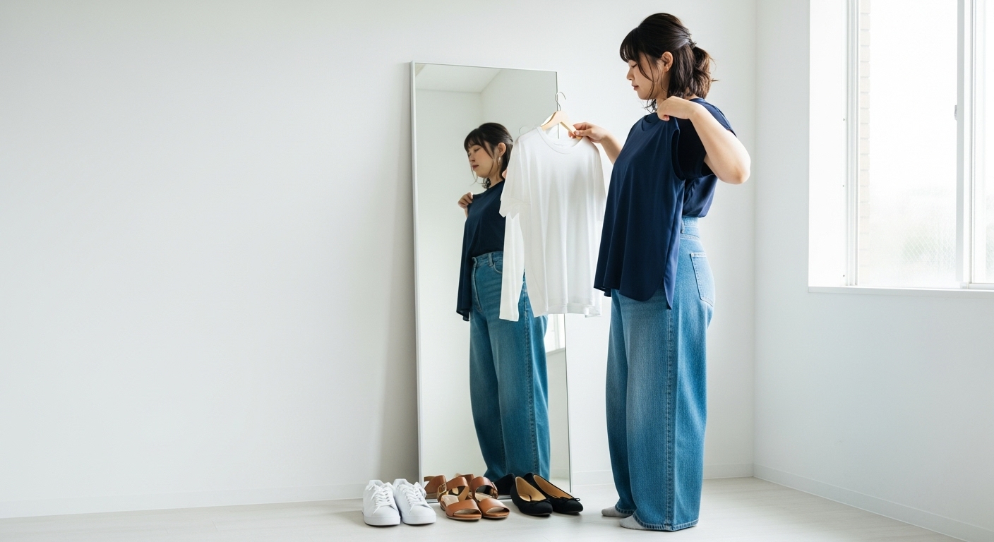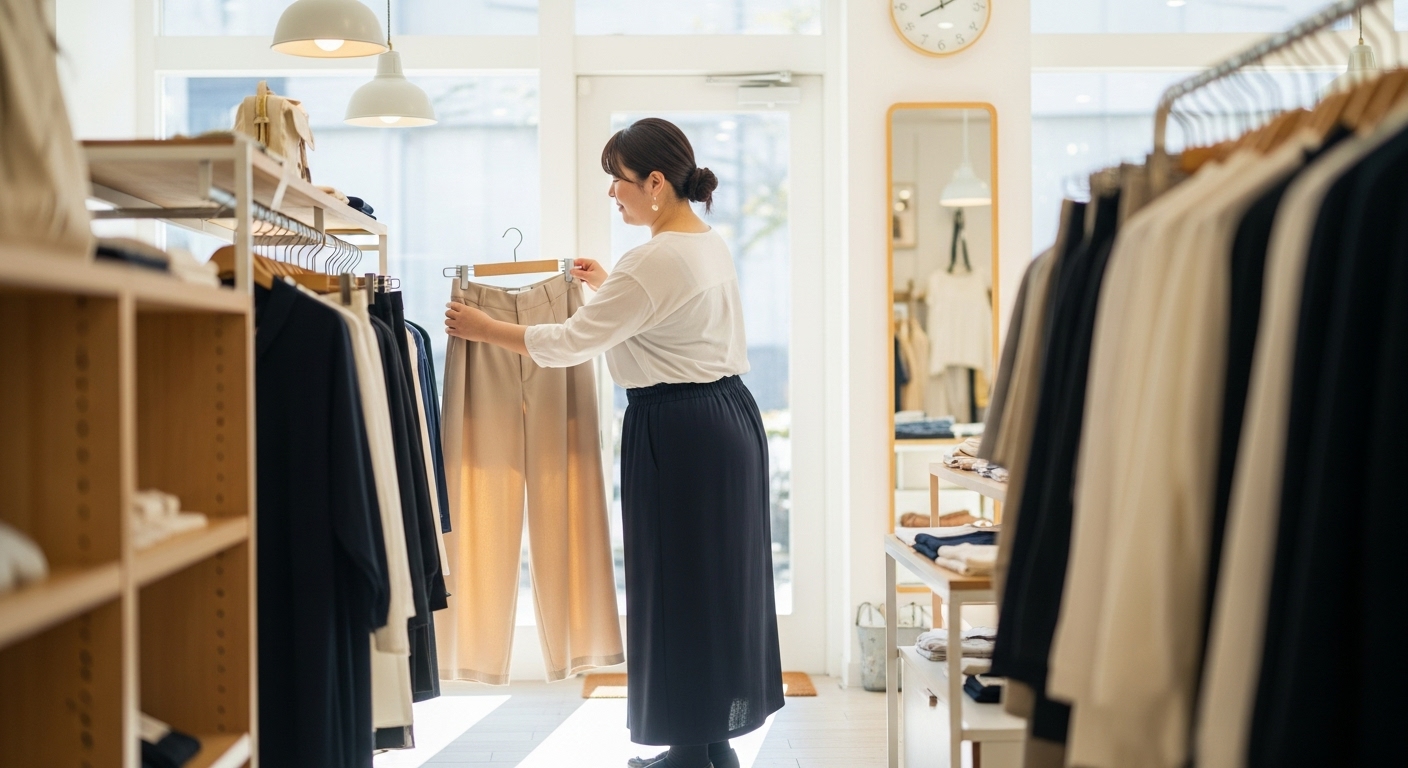 体型が気になる30〜50代女性向けに、太って見えないパンツ選びのポイントから、体型別・年代別の具体的なコーデ例まで分かりやすく解説。