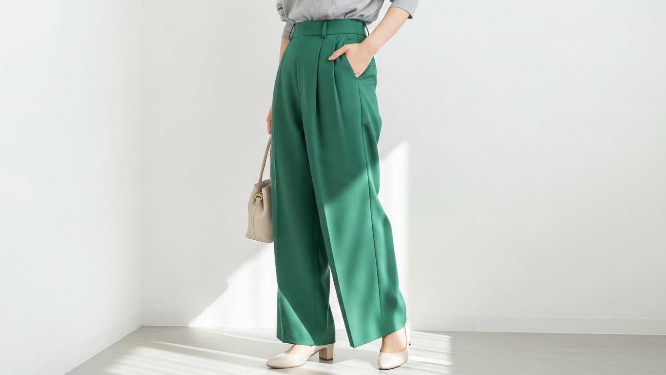 読み終わる頃には、自信を持ってグリーンのワイドパンツを選べるようになりますよ。