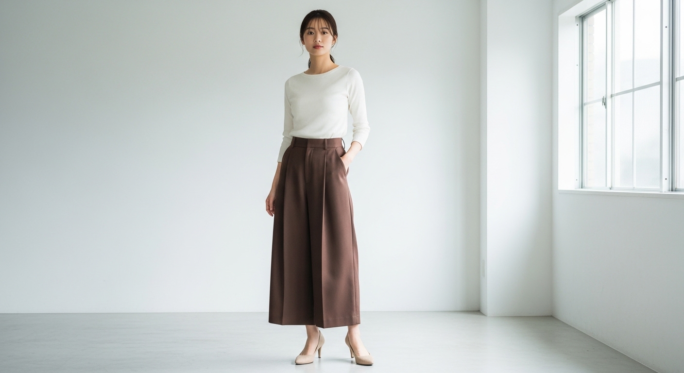 ブラウンのワイドパンツをおしゃれに着こなす|季節別コーデと選び方のコツ