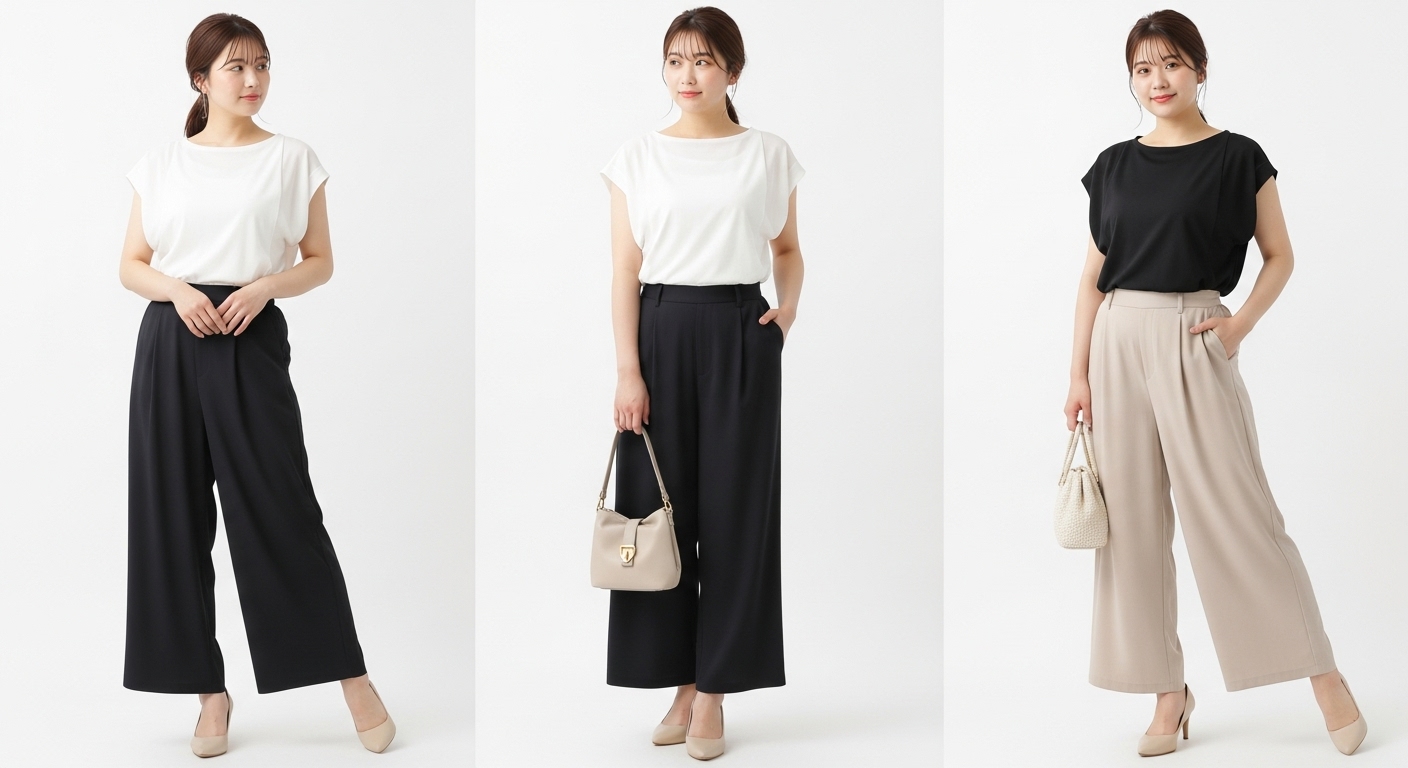 実は、ワイドパンツはぽっちゃりさんの強い味方!選び方さえ押さえれば、気になる下半身をすっきりカバーしながら、今っぽいおしゃれが叶うんです♪