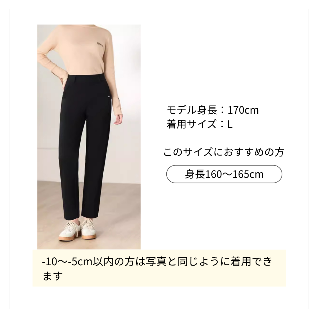 | サイズ | パンツ丈(cm) | ウエスト(cm) | ヒップ(cm) | 裾幅(cm) |