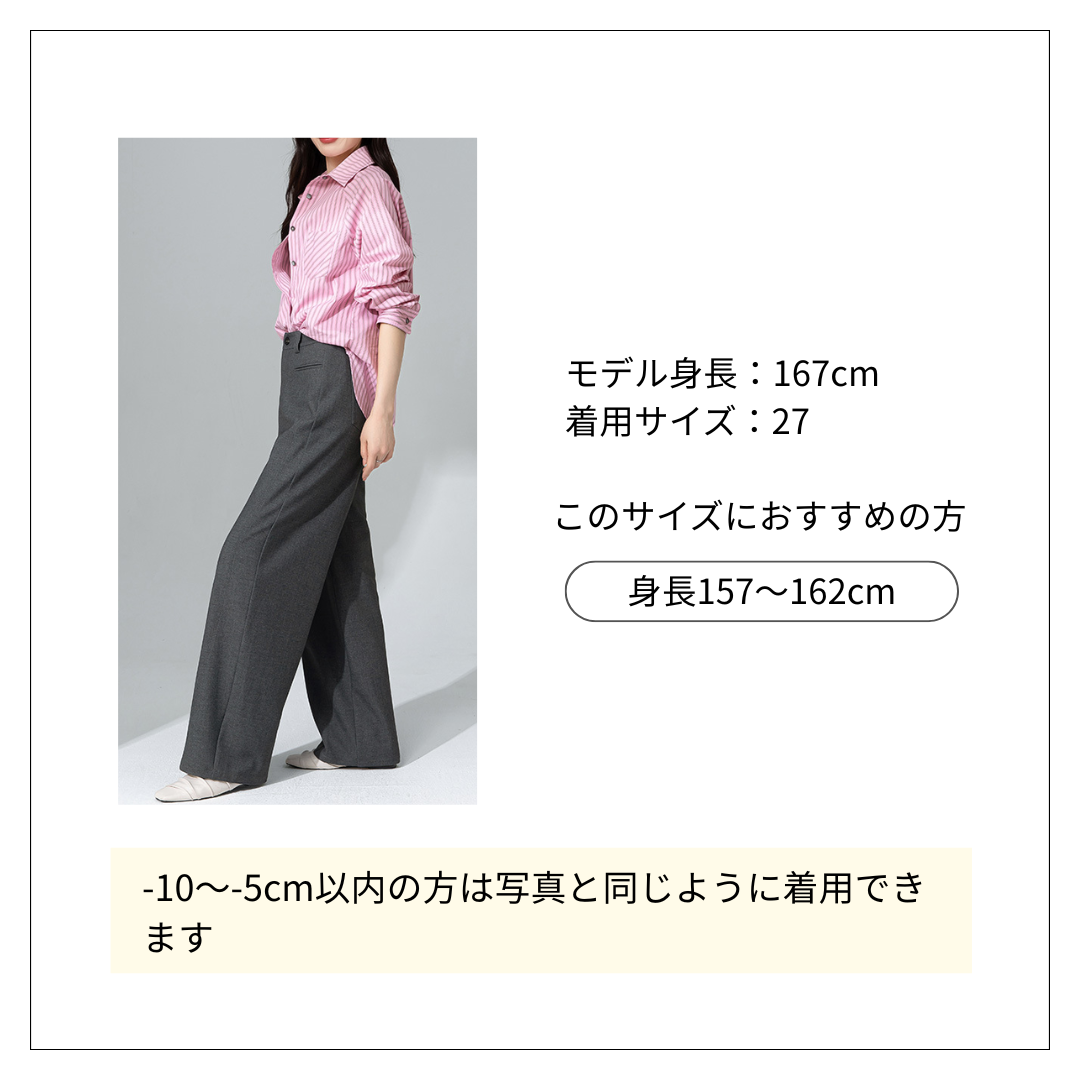 どんな体型にもしっくりくる体型カバーが叶うワイドパンツです。 上品な素材感と落ち感のあるシルエットで、脚のラインを自然にカバーしながらスタイルアップ効果もあります。 幅広いトップスと合わせやすく、オフィスからカジュアルまで活躍します。