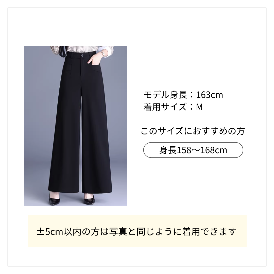 体型カバーが叶うワイドパンツは、すっきりとしたハイウエストデザインで脚長効果を演出。 落ち感のある上質素材で高級感があり、オフィスからお出かけまで幅広く活躍します。