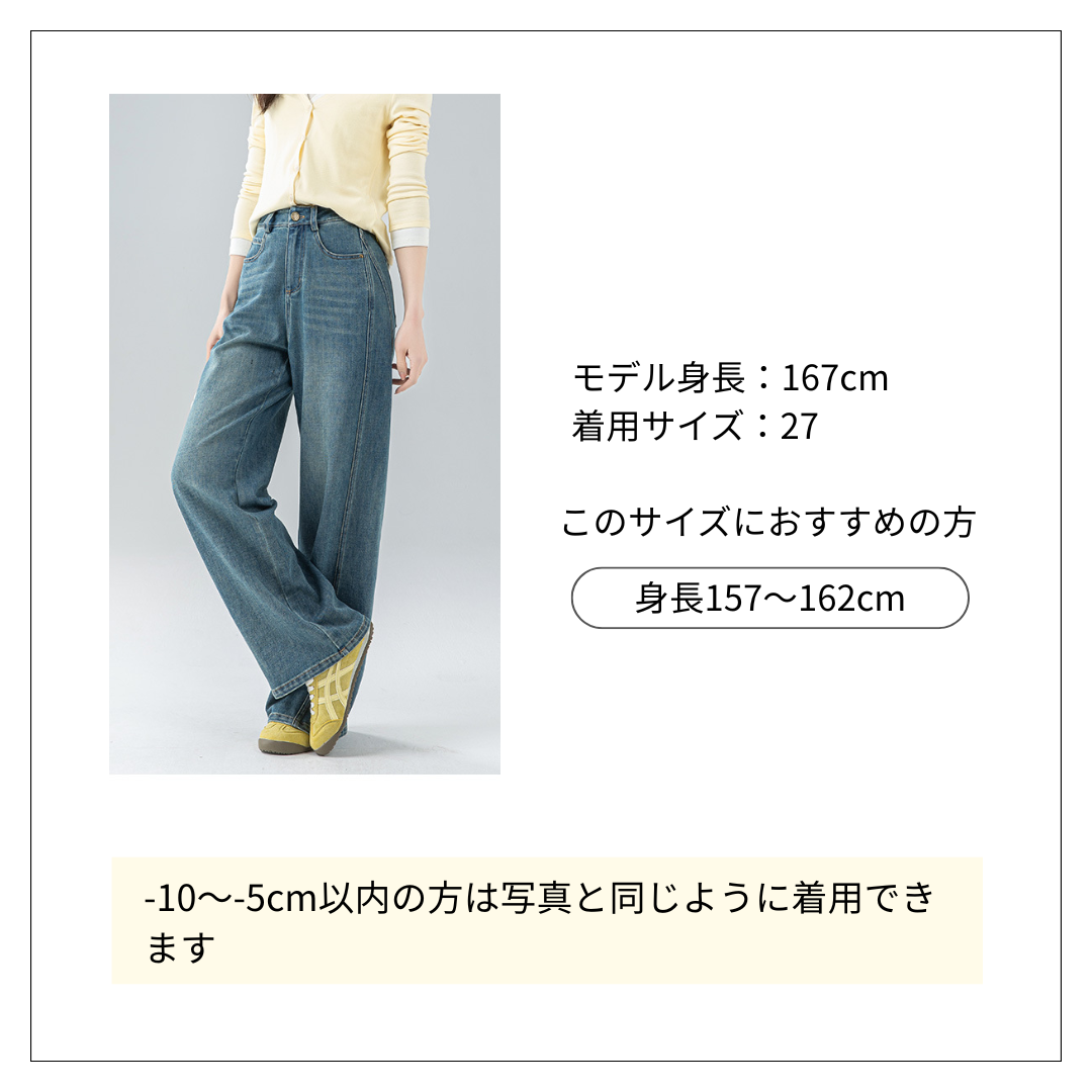 体型カバーにぴったりのワイド設計デニムパンツ。 高めのウエスト位置と広がりのあるシルエットで脚長効果が期待できます。 柔らかな穿き心地と程よい厚みで一年中活躍する万能デニムです。