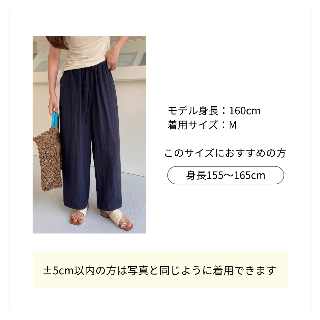 体型カバーに最適なリラックスシルエットのワイドパンツ。 軽やかな素材感で涼しげな印象を与え、どんなトップスとも相性抜群。 ウエスト部分は程よくゆとりがあり、快適な着心地を実現します。