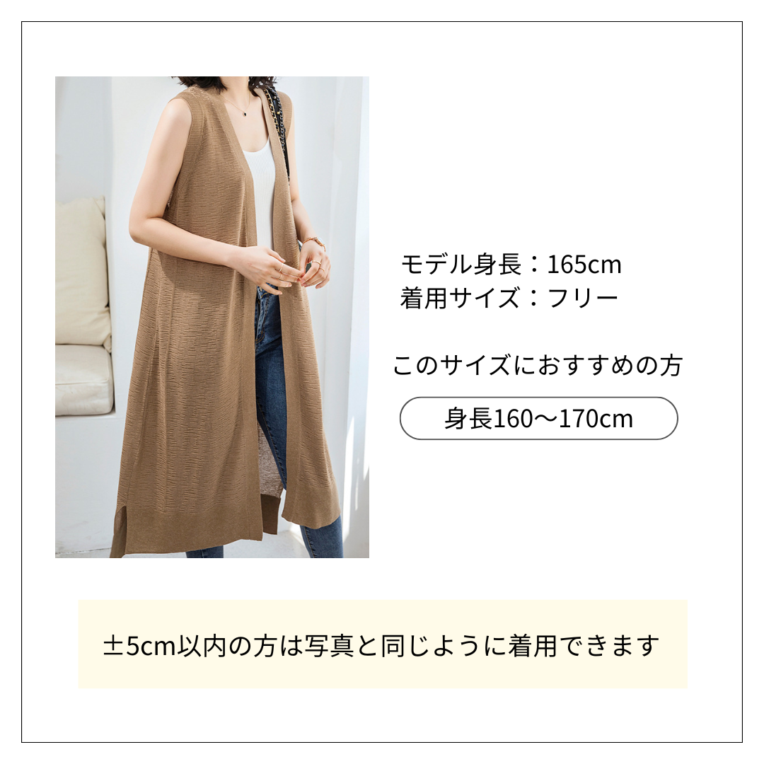 スタイリッシュな装いを叶える体型カバーロングジレ。 軽やかな素材感で季節を問わず着用でき、ゆったりとしたシルエットが体型をさりげなくカバー。 内側のトップスを選ばないデザインで、デニムとの相性も抜群です。
