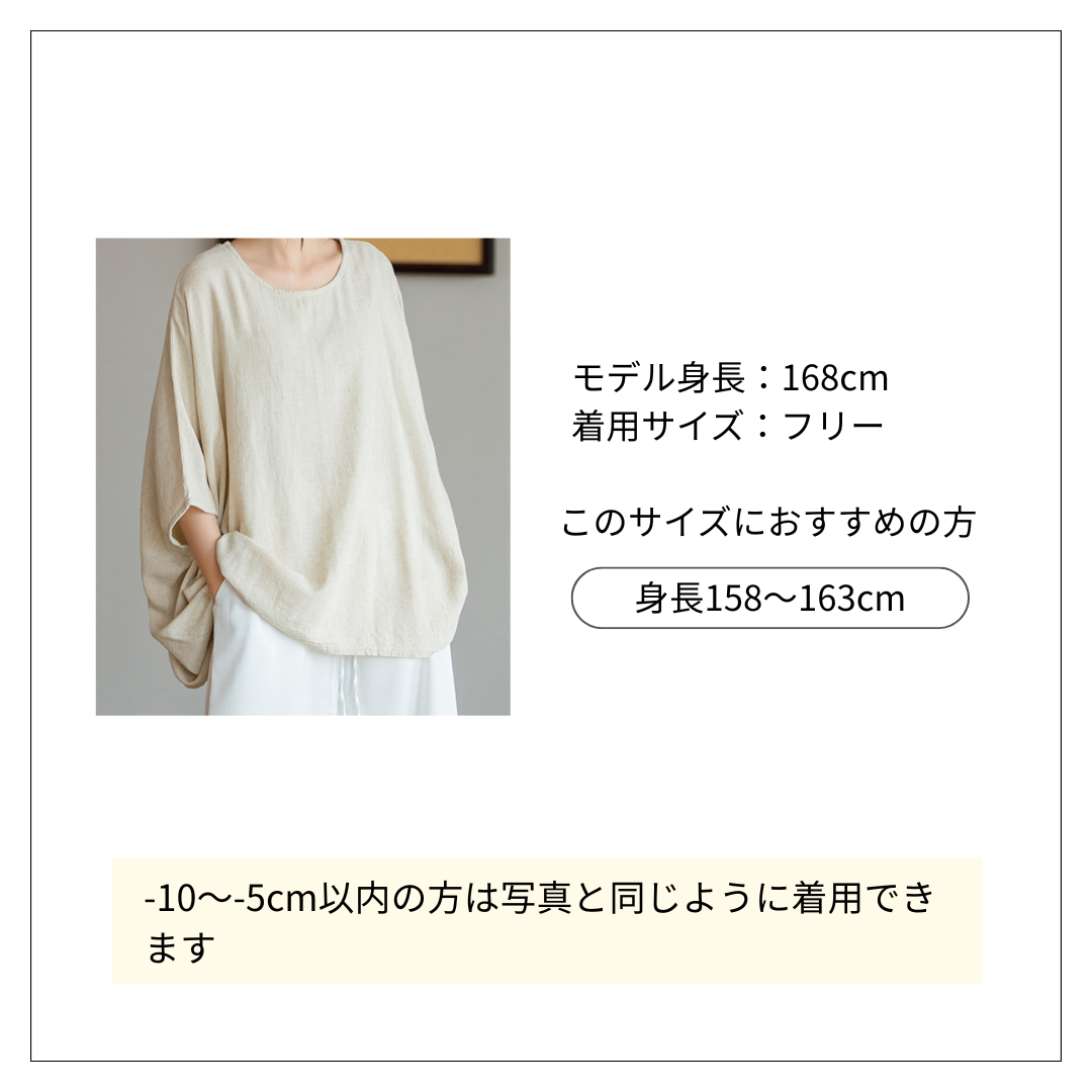 ドルマンスリーブで優しく体型カバーできるリネン風ブラウス。 肩から裾にかけてふんわり広がるデザインで窮屈感なく着られます。 上質な素材感と落ち着いた雰囲気が魅力の一枚です。