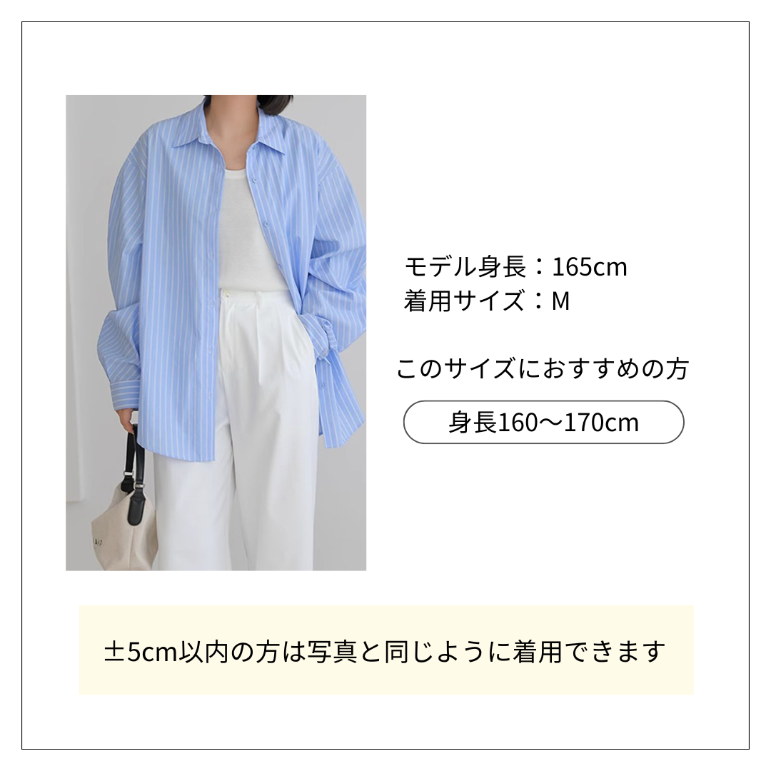 体型カバーにぴったりなオーバーサイズのストライプシャツ。 白のインナーと合わせて爽やかな印象に。 白のワイドパンツとの相性も抜群で、ゆったりとした着心地を楽しめる一枚。