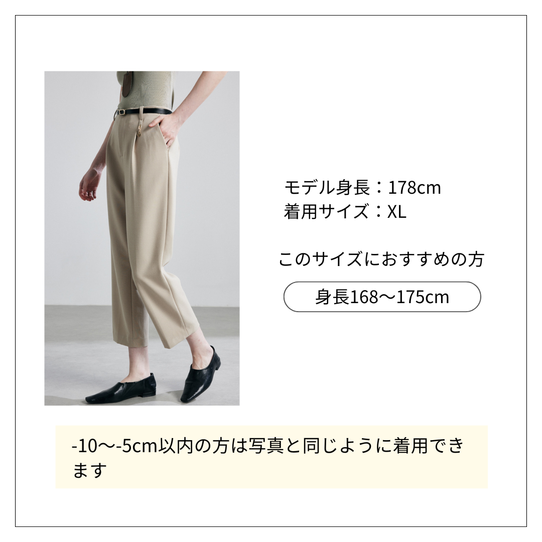 体型カバーを叶えるストレートパンツ。 適度な余裕のあるシルエットで脚のラインを自然にカバーしながら、スタイリッシュな印象を演出します。 薄手の素材で季節を問わず活躍する一着です。