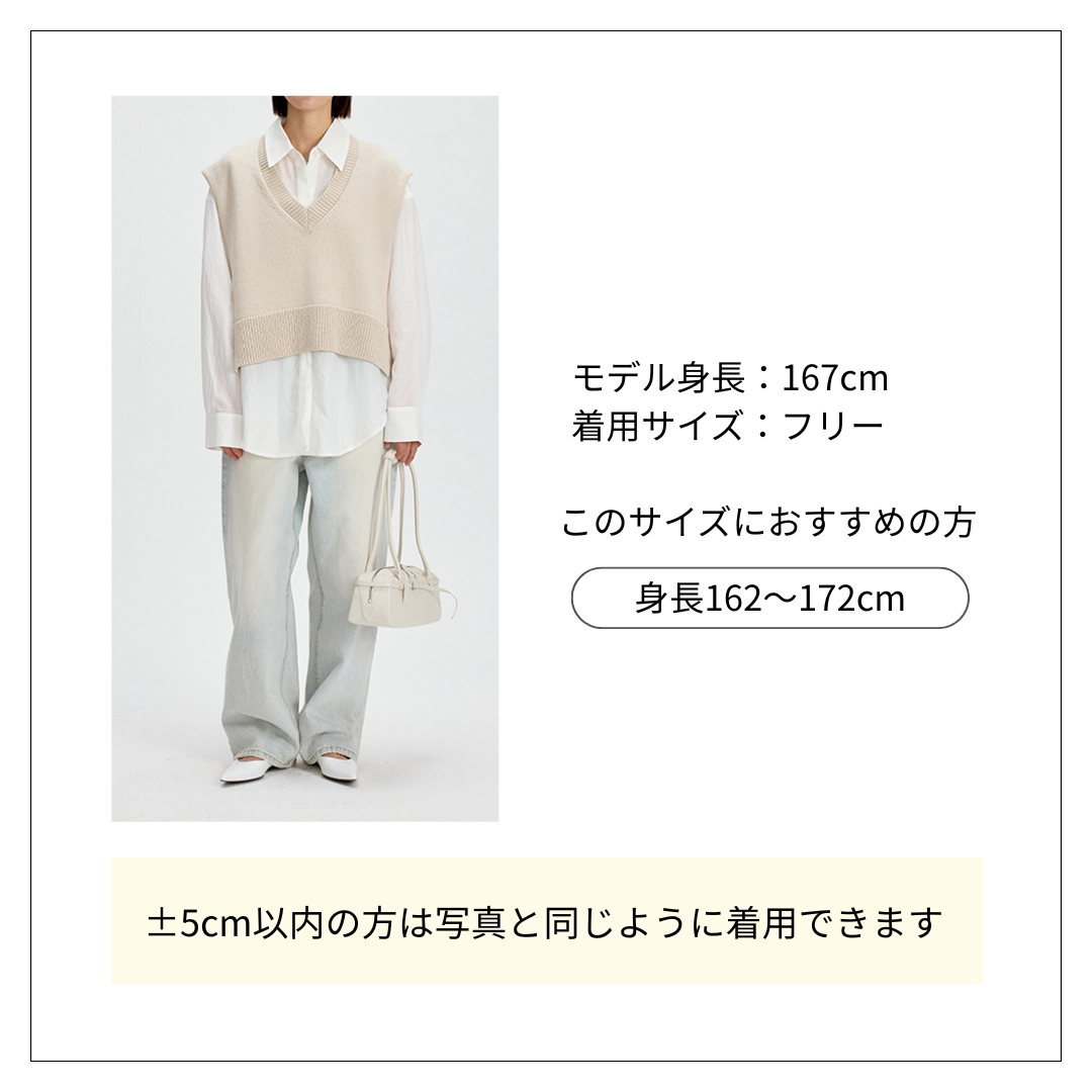 体型カバーが叶うゆとりのあるシルエットのベスト。 白シャツとの重ね着で上品な印象に仕上がります。 短めの丈感で腰回りをすっきりと見せる体型カバーベストです。