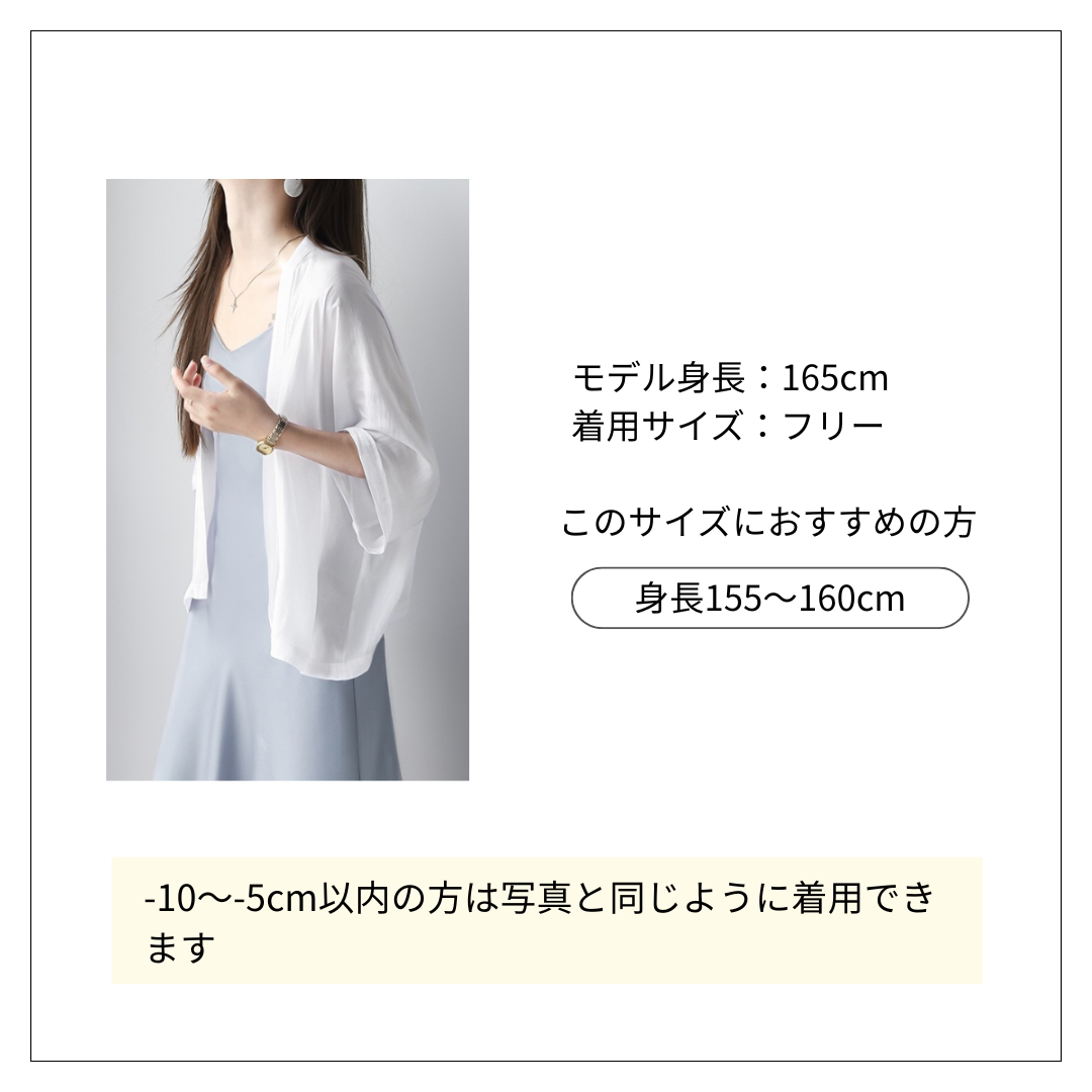 体型カバーが叶う、軽やかな質感の七分袖カーディガン。 緩やかなシルエットと広めの袖口がすっきりとした印象を演出。 薄手素材で夏場の冷房対策にも最適なカーディガンです。
