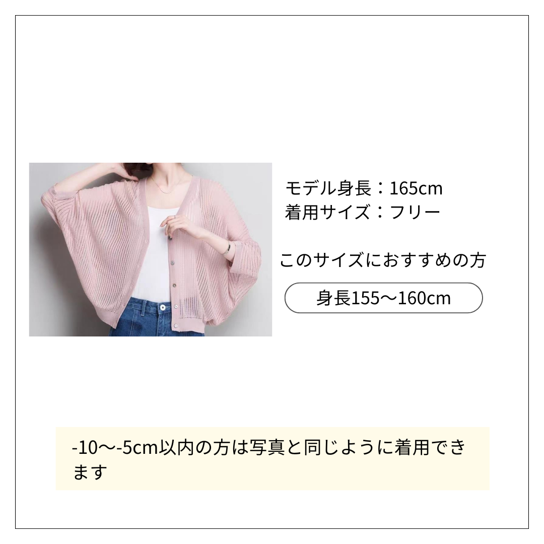 体型カバーに最適なドルマン風デザインのカーディガン。 透け感のある軽やかな素材で季節の変わり目にぴったり。 縦ラインのリブ編みが華奢見えを演出し、ゆったりシルエットで気になる二の腕もカバー。