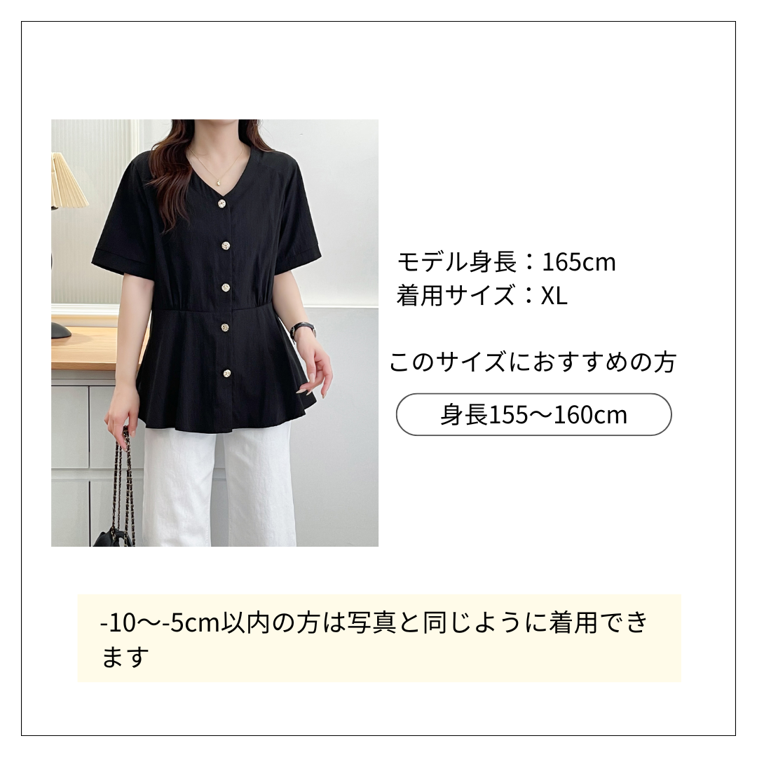 体型カバーしながら女性らしいラインを演出する薄手ブラウス。 ウエストのすっきりとしたシルエットで、スタイルアップ効果があります。 装飾的なボタンがアクセントになり、カジュアルにもきれいめにも着こなせる体型カバーブラウスです。